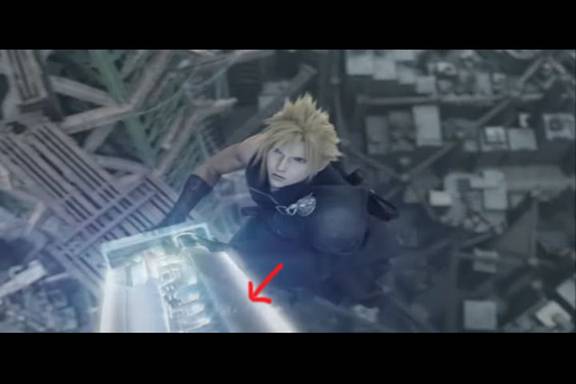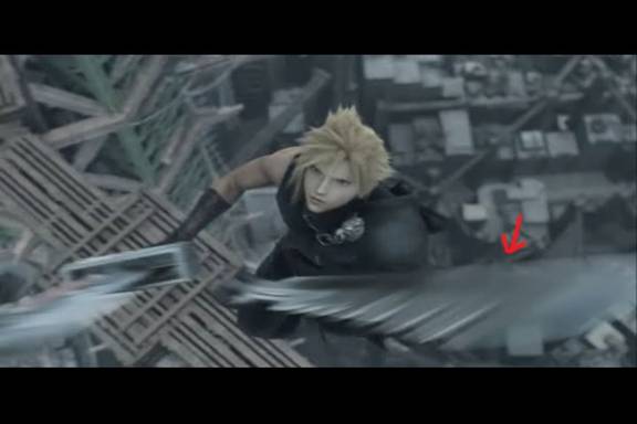 just before Kadaj flings Cloud’s sword to the very scene above. You’ll see its