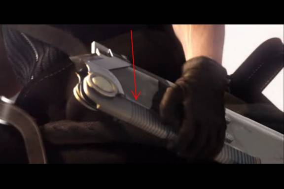 the right side of the main blade just as Kadaj is about the fling the sword out